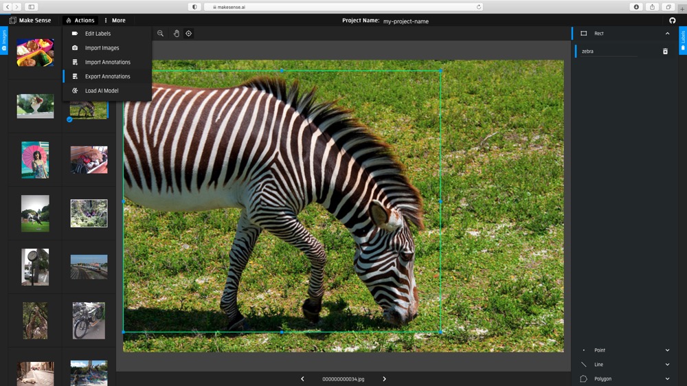 (1) Upload images to [makesense.ai](https://www.makesense.ai) and select Object Detection option.
