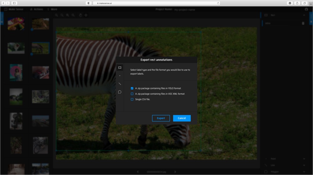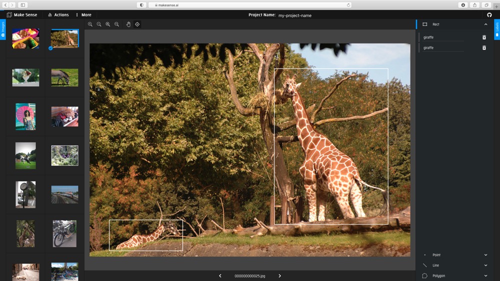 (1) Upload images to makesense.ai and select Object Detection option.